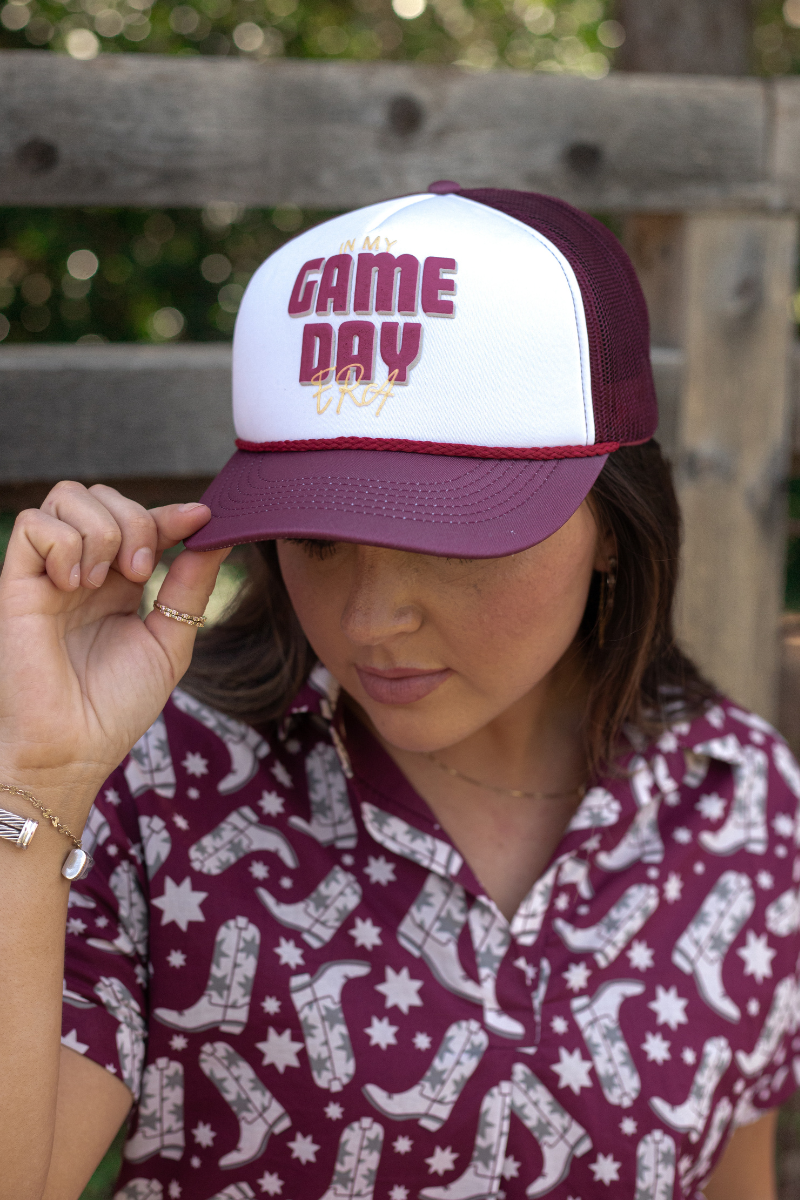 We're in our Game Day era! The Game Day Era Cap is a trucker style snap back cap with puff wording.