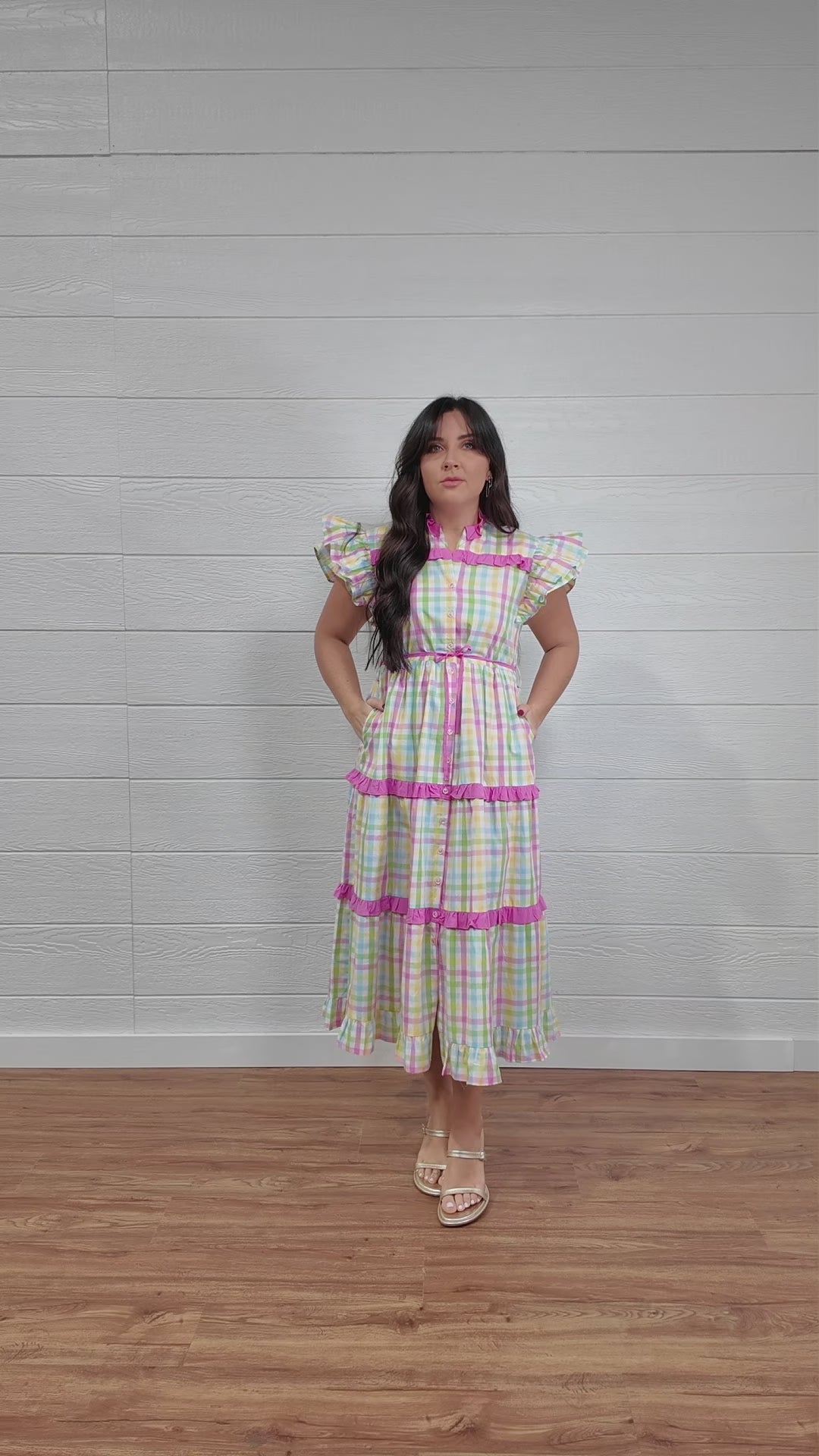 Soft, romantic, and perfect for the season, this pastel plaid maxi dress features delicate pink detailing for a sweet Easter-inspired touch. The flowing full-length silhouette creates graceful movement, while the gentle color palette keeps the look fresh and feminine. Ideal for spring celebrations, brunches, and special holiday gatherings.